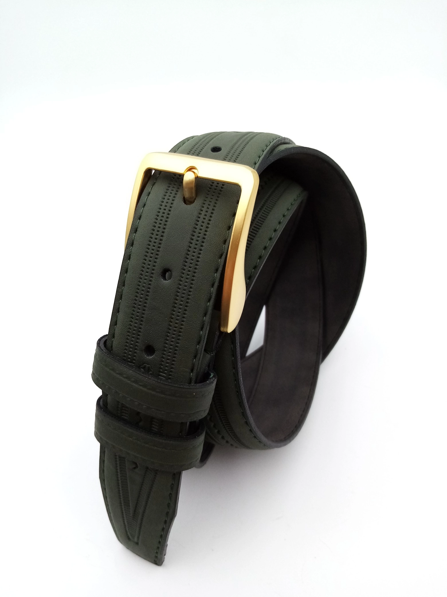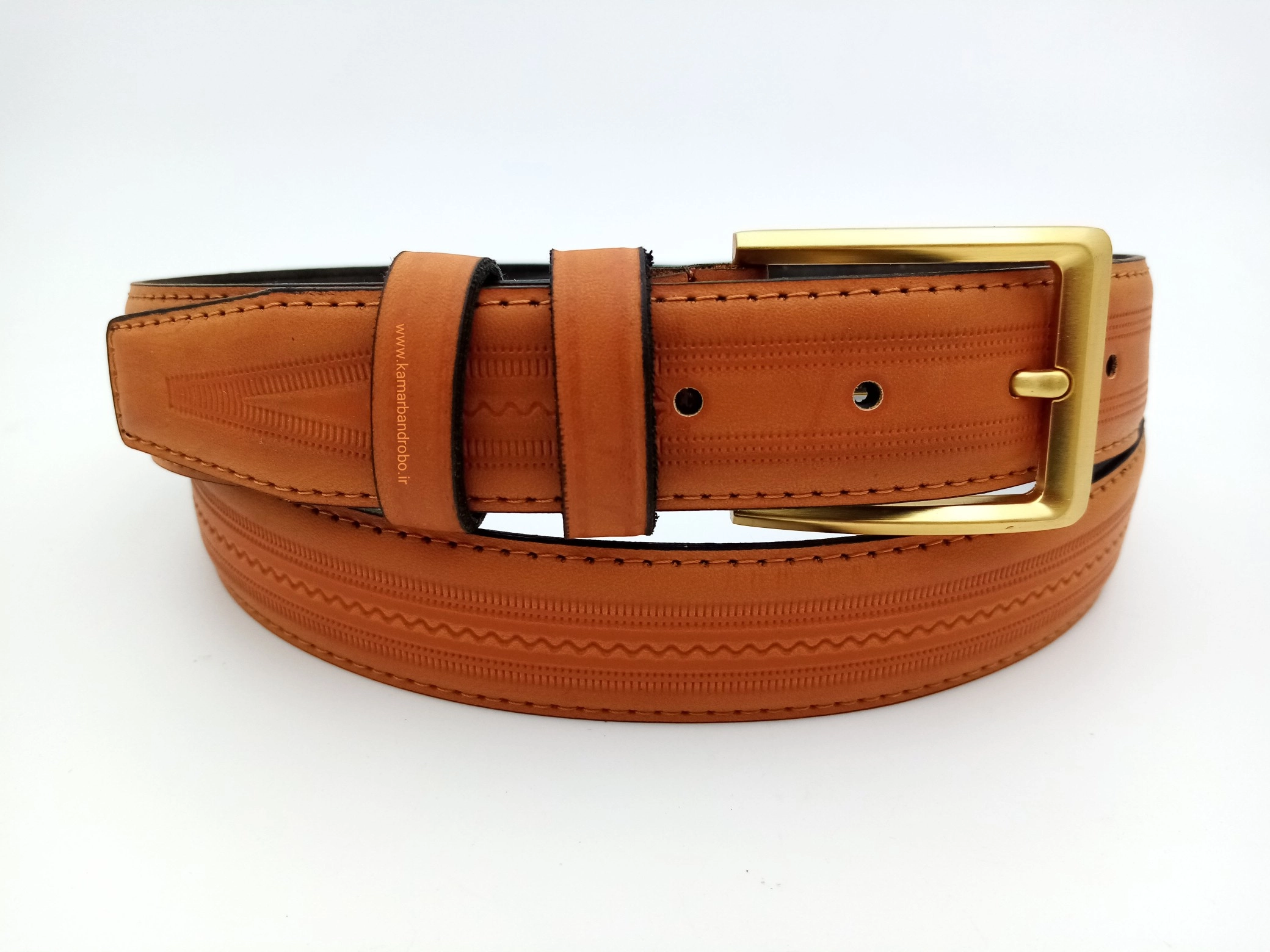 کمربند مردانه قلاب طلایی خارجی طرح چرم 3.5سانت